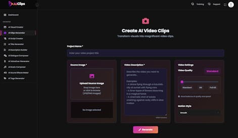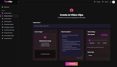 AI Clips is an all-in-one cinematic video creation platform that turns any idea, image, keyword, or script into a Hollywood-style AI video in seconds — without editing, filming, or technical skills.